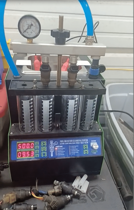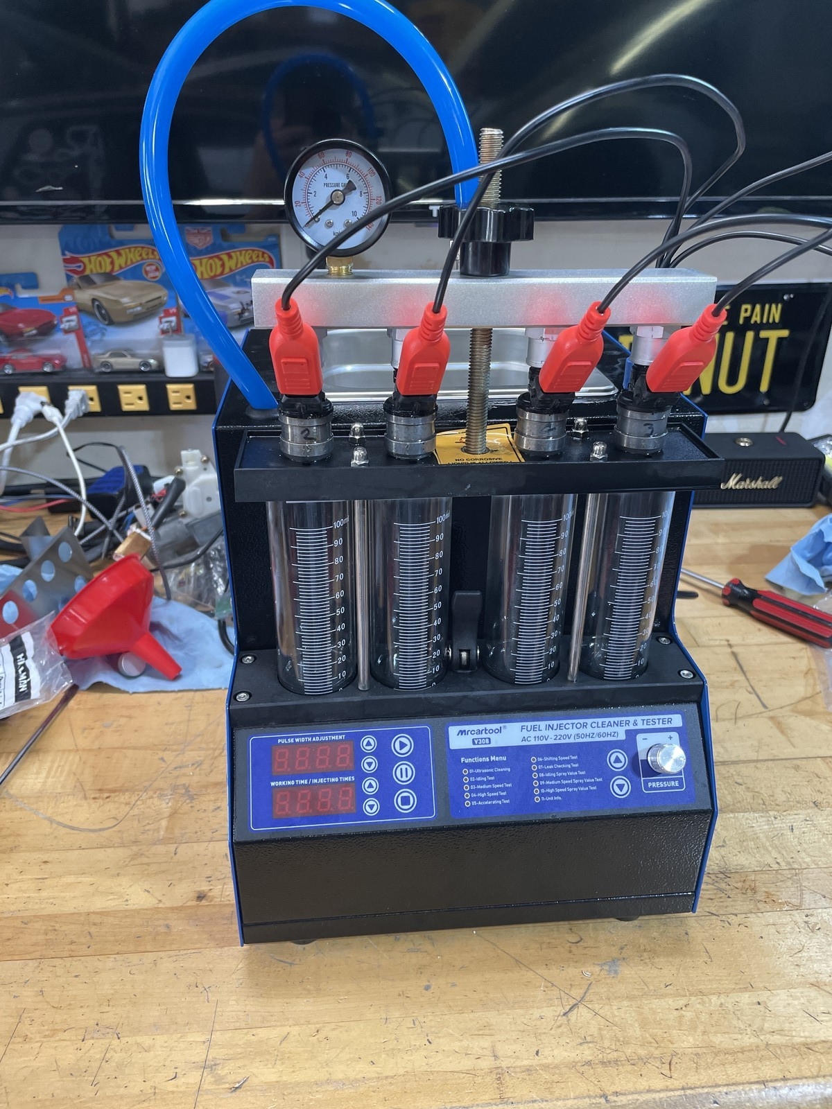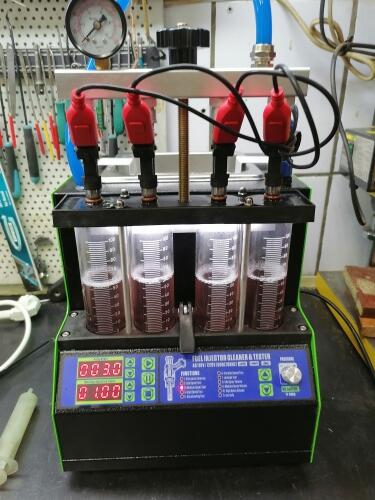 This fuel injector cleaner/tester works well right out of the box. What’s really nice is the number of fittings supplied with this set. In this case, the fittings for reverse flush were a different than size than for testing. One thing to note is never use anything corrosive as a test fluid as it will destroy the pump and seals very quickly. The manufacturer recommended the alcohol which worked well for me especially since test fluid is difficult to actually procure. If you can find it, it tends to be very expensive. If using on injectors for every day drivers, alcohol as a test fluid is fine.
