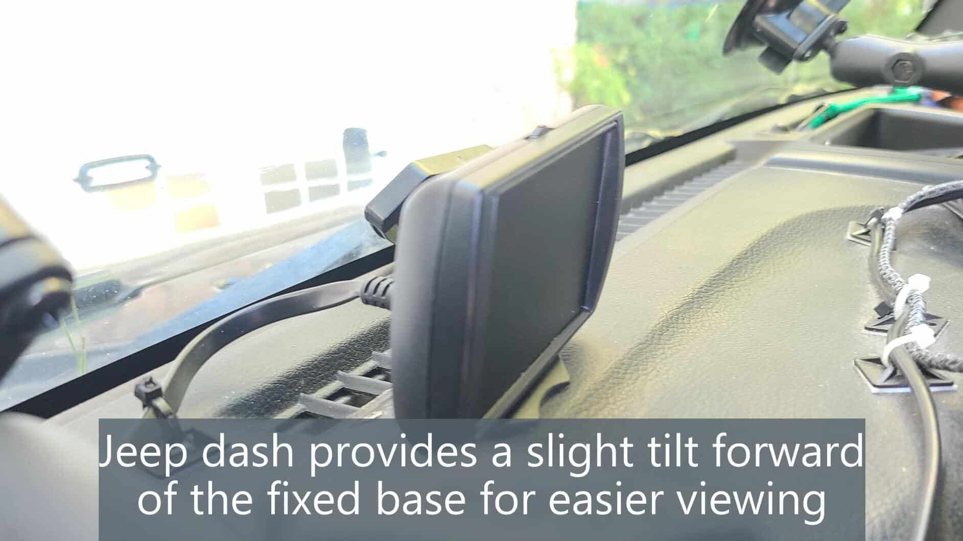 — STRONG ADHESIVE PAD: The adhesive pad secures the unit firmly to the Jeep vinyl dash. (We cleaned the surface with alcohol first.)