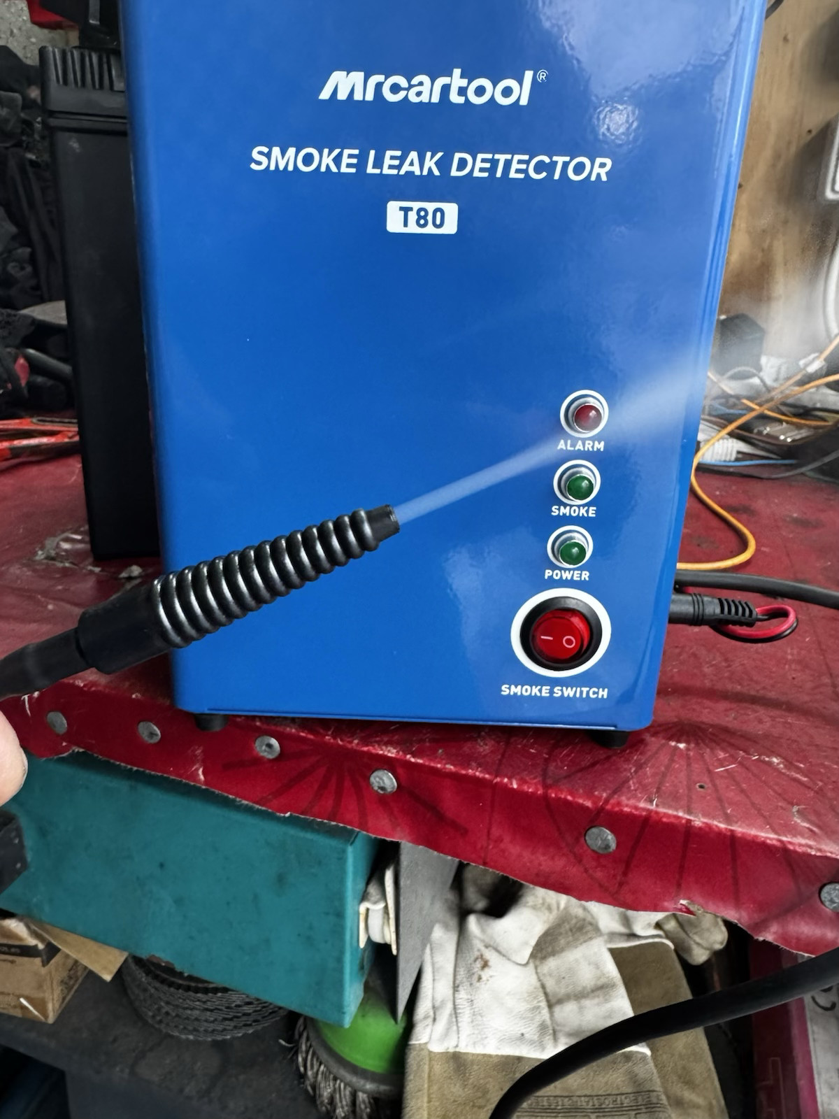 - Étape 4 : En 30 secondes environ, le tuyau sera rempli de fumée. Vérifiez les points de fuite. Utilisez une lampe frontale si nécessaire.