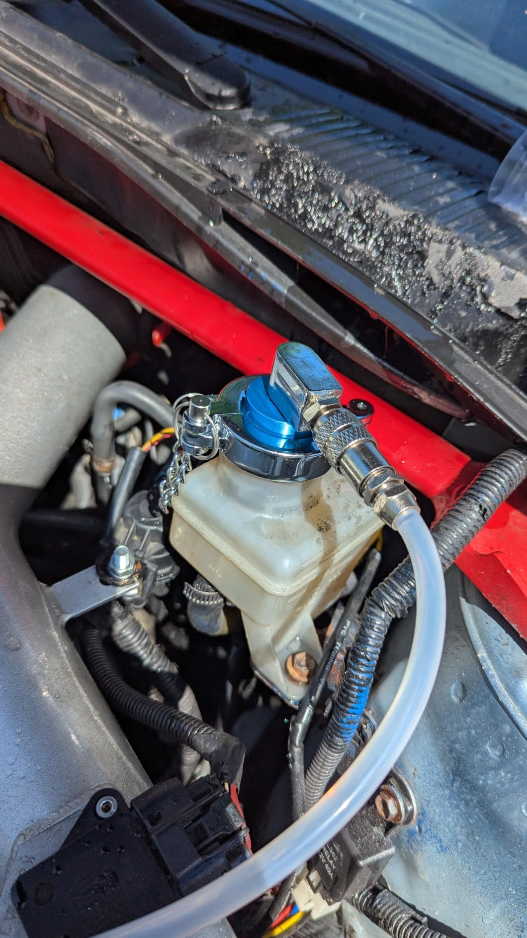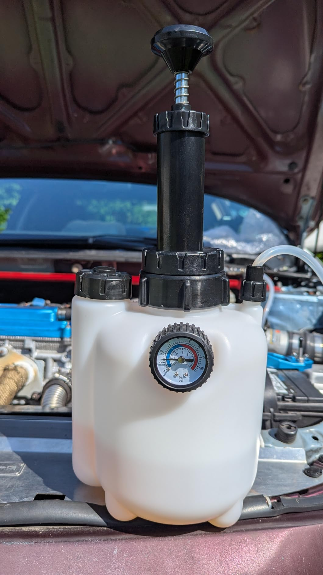 Alot of Toyota’s use this style master cylinder, so if you’re looking to bleed your brakes solo, grab this unit. No air compressor needed, and about 10psi on the gauge is plenty.
