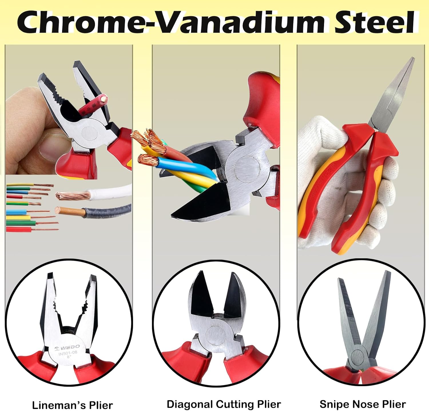 - High-Strength Insulation: Professional electrician screwdriver set featuring heavy-duty insulating materials, VDE-tested to withstand 1000-volt high-voltage currents. Ensures maximum occupational safety and provides a secure working environment for all electrical maintenance and operations.
