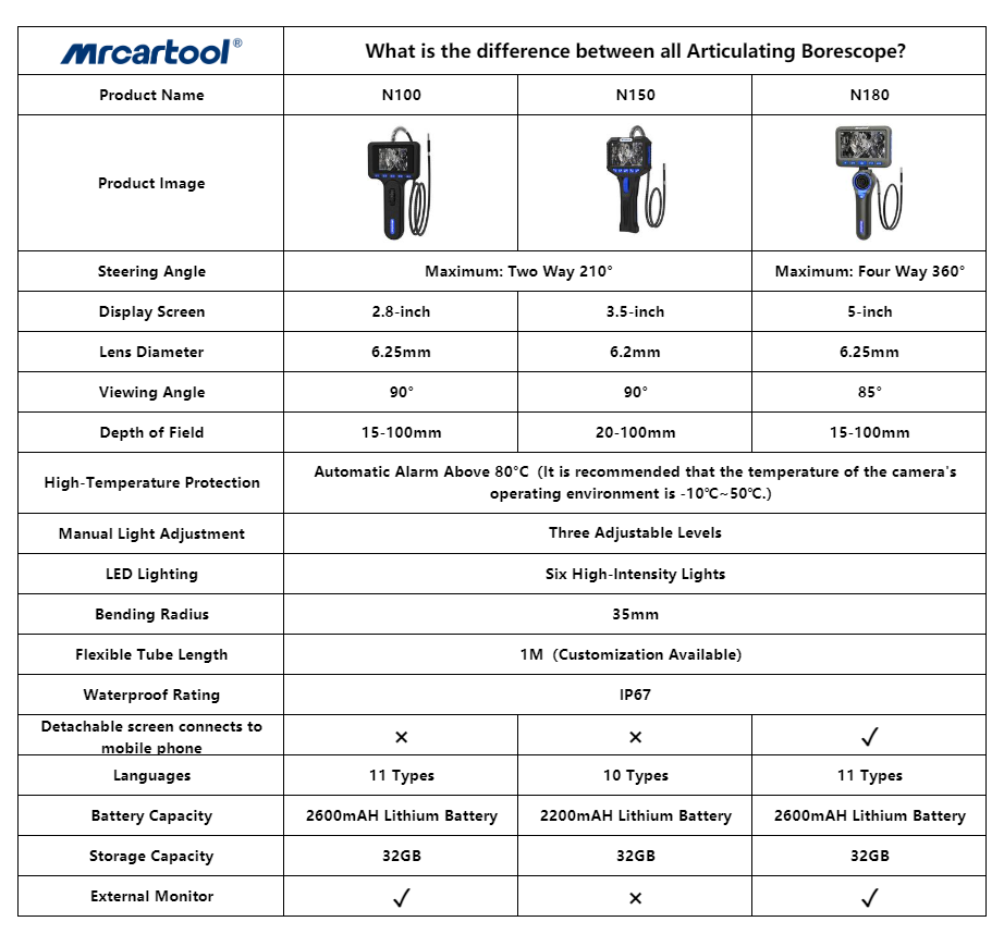What is the difference between all MRCARTOOL Borescope Cylinder Inspection?